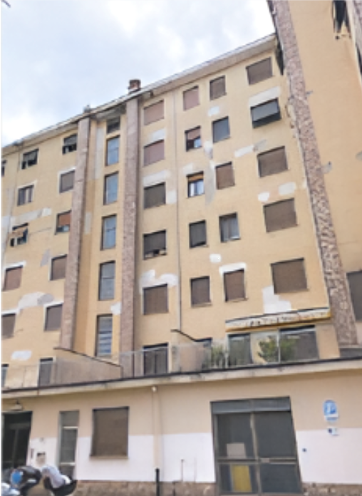 L'unità abitativa si sviluppa al sesto piano di un edificio condominiale ed è composta da ingresso, soggiorno con zona cottura, ripostiglio, sala,