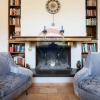 - Bright living room with large panoramic window overlooking the village, a spacious convivial fireplace, and direct access to the terrace
