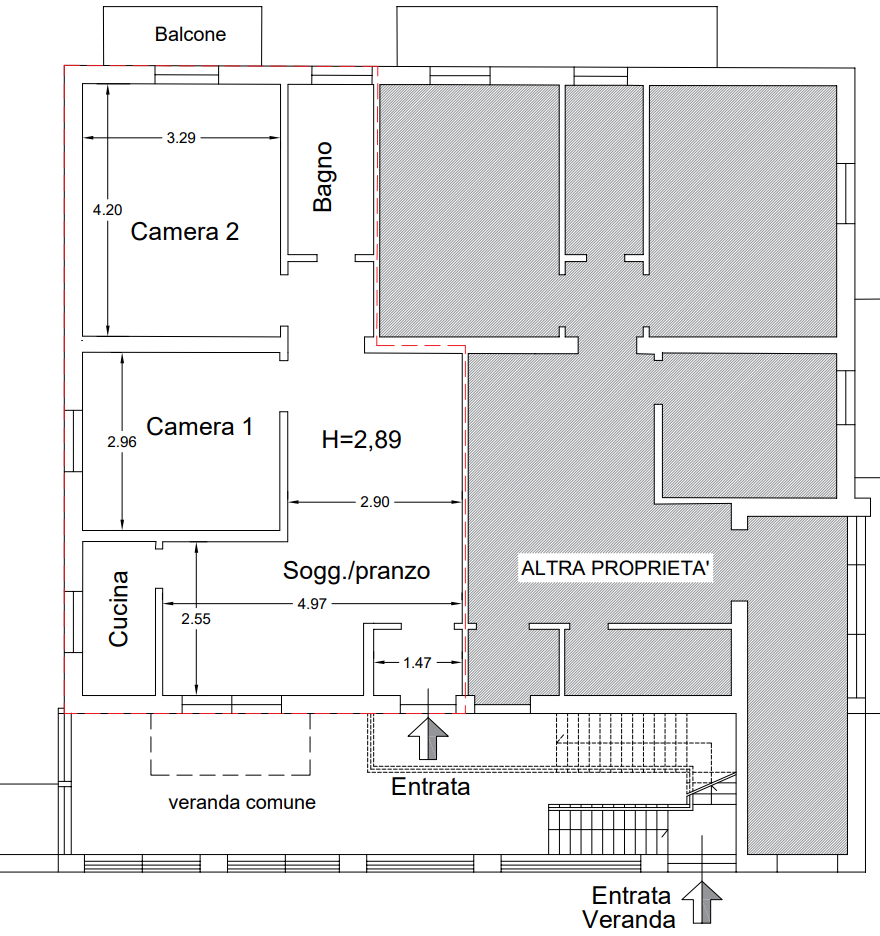 Trattasi di appartamento posto al piano primo di edificio residenziale, con accesso diretto dalla veranda comune, articolato in ingresso, soggiorno/pranzo, cucinotto, bagno, due camere e balconcino.