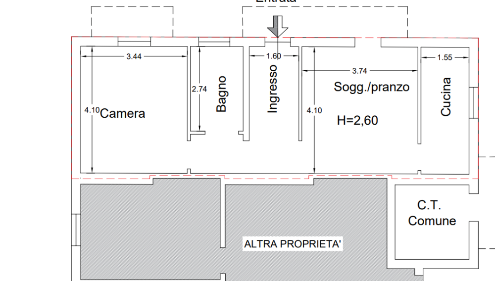 Trattasi di appartamento posto al piano terra di edificio residenziale composto da sei unità abitative, con accesso diretto dalla ampia corte comune, articolato in ingresso, soggiorno/pranzo, cucinotto, bagno e camera.