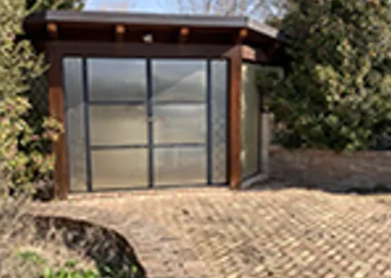 Due box auto della superficie di 52 mq e 35 mq c'è in oltre un ricovero attrezzi.