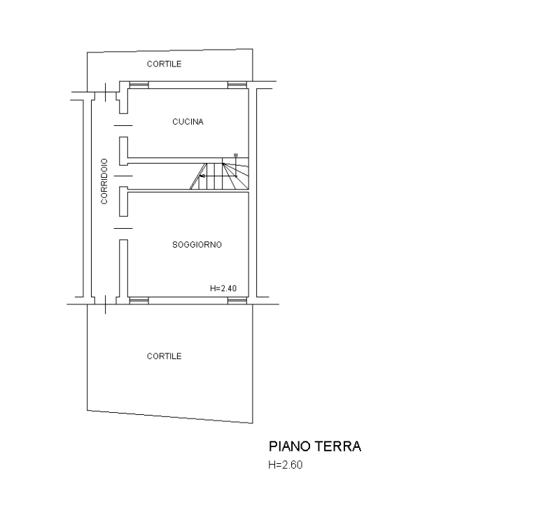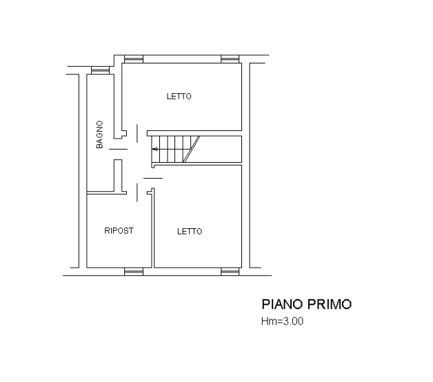 Trattasi di appartamento composto da piano terra con corridoio, soggiorno, cucina e vano scala per l'accesso al piano superiore; al piano primo troviamo disimpegno, due camere da letto, ripostiglio e wc.