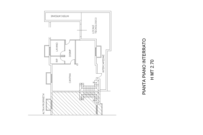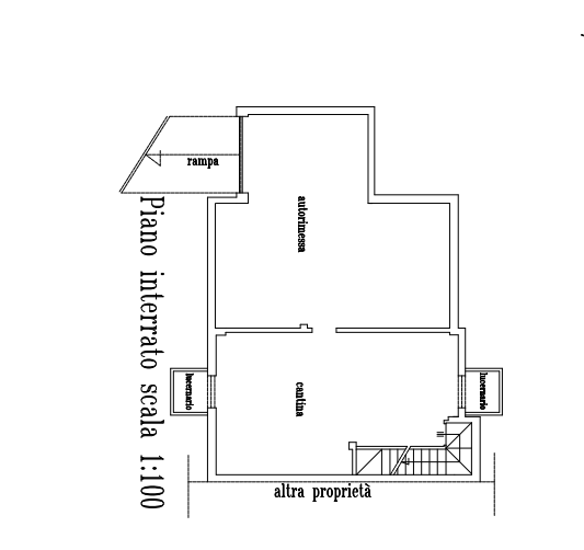 Il piano seminterrato, ad uso non residenziale, comprende un ampio salone, cucina, disimpegno, ripostiglio e bagno, per una superficie utile di circa 82,70 mq con altezza di 2,70 m. Sullo stesso livello si trovano inoltre un garage di circa 20 mq e un'area ad uso deposito di circa 39 mq.