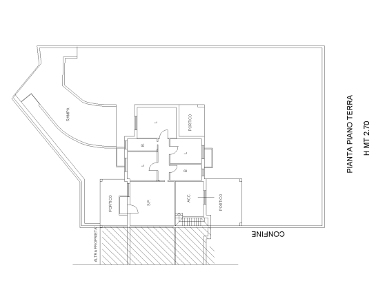 Completano il piano un portico d'ingresso di circa 15 mq, un portico chiuso con vetrate di circa 18,50 mq, un portico parzialmente chiuso di circa 8,30 mq e un balcone di circa 9 mq.