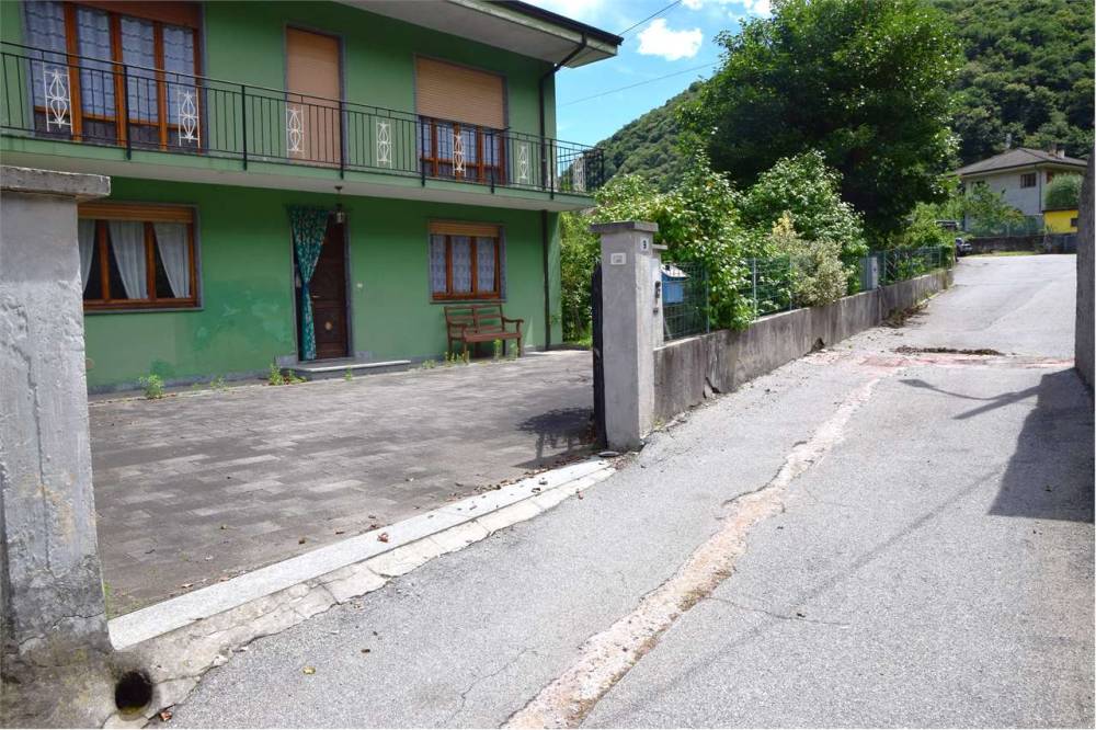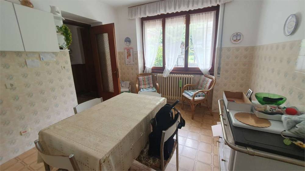 Il piano terra è composto da ingresso, cucina abitabile, soggiorno, disimpegno e bagno con attacchi per eventuale vasca/doccia. Tramite scala interna con vetrocemento, si accedere al primo piano composto da due camere da letto matrimoniali, secondo bagno con vasca, spazioso disimpegno e balcone lungo tutta la facciata con bella visuale sulle montagne circostanti. Sempre dal vano scale interno, si raggiunge il sottotetto non abitabile utilizzabile come ripostiglio. Accessibile sia dall'interno sia tramite porta esterna con scaletta, vi è una cantina al piano interrato.