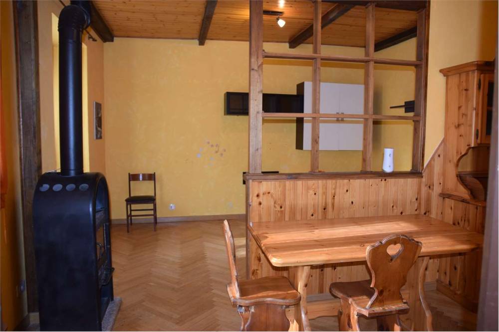 COMUNE DI BANNIO ANZINO - Nella frazione Pontegrande, sulla strada provinciale e a soli 10 km dalle porte di Macugnaga con il suo Monte Rosa, vendesi appartamento sito al primo piano di vecchia casa di corte, un tempo sede dell'asilo e successivamente esattoria (circa anni '30). L'immobile è composto da ingresso, zona giorno con stufa a legna, angolo cottura, spaziosa camera da letto matrimoniale, camera singola con ripostiglio, locale caldaia, bagno con doccia e disimpegno. L'appartamento si presenta in buono stato e viene venduto arredato come da fotografie. E' stato oggetto di parziale ristrutturazione nel 2016 (rifacimento bagno, sostituzione infissi in camera e bagno, rifacimento di parte dei pavimenti, rifatto cancello d'ingresso in ferro battuto..). Il riscaldamento è autonomo a radiatori con caldaia a condensazione e supplemento della stufa a legna; infissi esterni in parte in pvc doppio vetro e in parte in legno vetro singolo; persiane in legno e tapparelle. Collegato alla fognatura comunale. Tetto in tegole rosse.