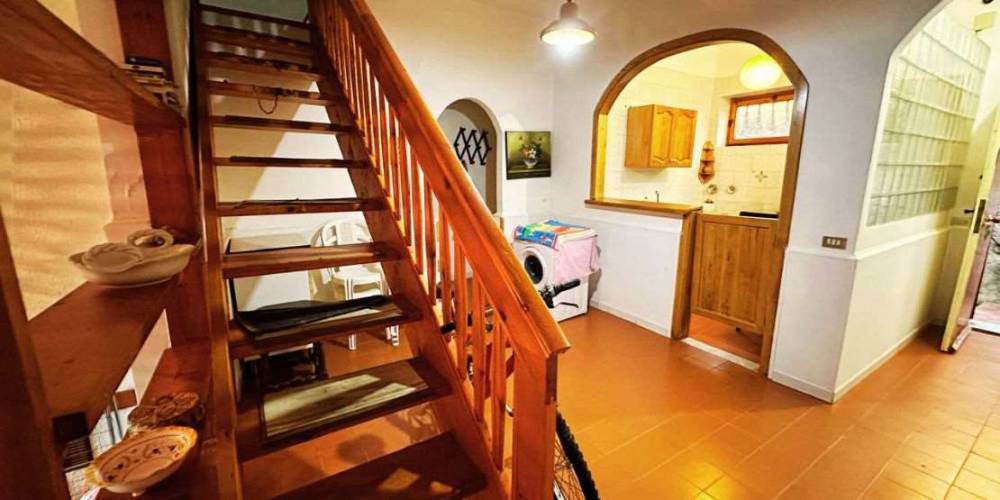 Il piano terra è composto da un ingresso con cucina - uno spazio accogliente e pratico perfetto per la vita di tutti i giorni, un soggiorno con camino - ottimo per rilassarsi o intrattenere gli ospiti, un bagno completo e confortevole, una pratica dispensa che permette di ottimizzare gli spazi e tenere in ordine la casa, un patio esterno - uno spazio ideale per pranzare all'aperto, e un ampio giardino spazioso e ben curato.