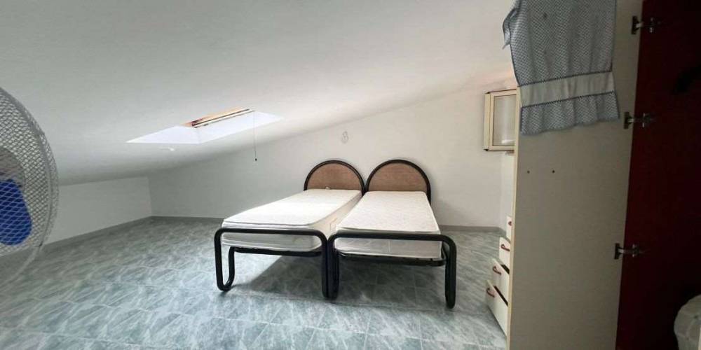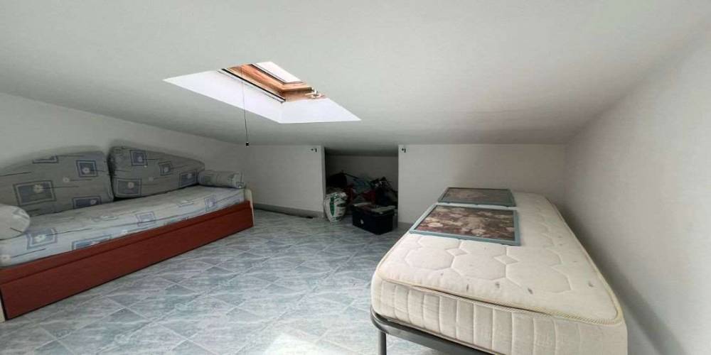 L'immobile, di circa 60 mq interni, si sviluppa su due livelli. Al piano principale troviamo un luminoso soggiorno con angolo cottura, due camere matrimoniali e un bagno. Il piano superiore, mansardato, ospita altre due camere matrimoniali e un secondo bagno, offrendo spazi ampi e funzionali adatti a famiglie numerose o per l'accoglienza di ospiti.