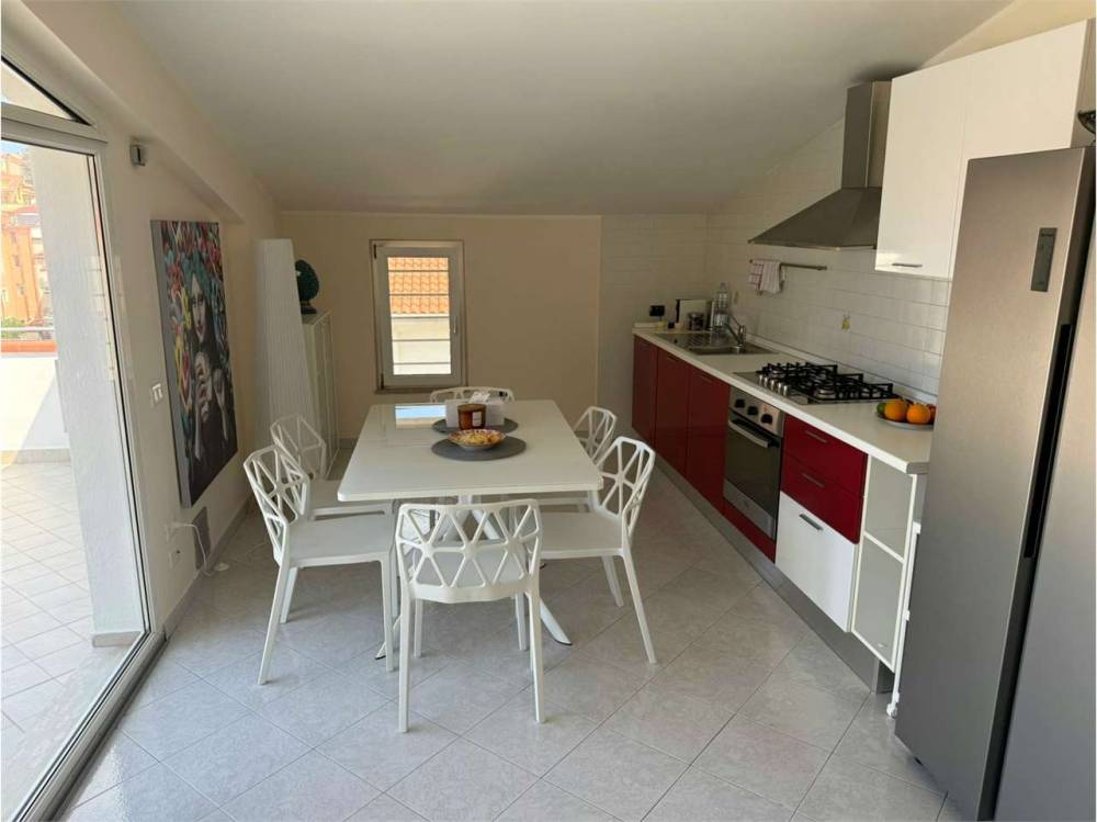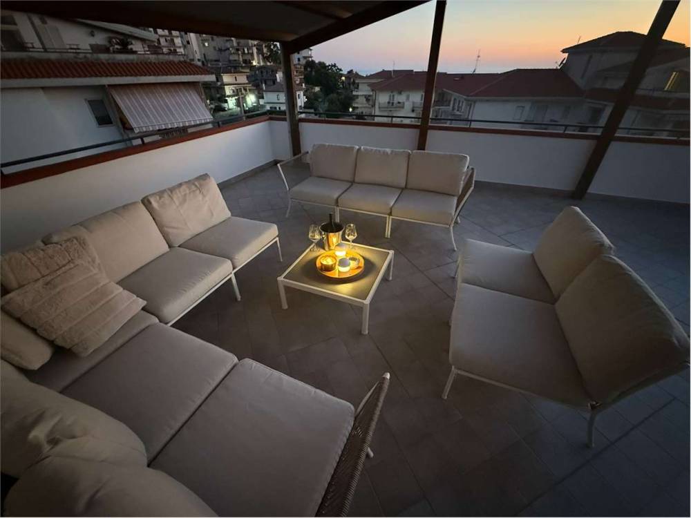 Nel cuore della marina di Belvedere Marittimo, proponiamo in vendita un elegante appartamento di circa 90 mq, finemente arredato, con un'ampia terrazza di 60 mq che offre una splendida vista panoramica sul mare, sulle montagne e sul centro storico del paese. L'immobile si compone di ingresso, ampio salone, cucina abitabile, due camere da letto, bagno, lavanderia, cantina e una terrazza vivibile di 60 mq. L'ascensore arriva direttamente all'interno dell'appartamento, garantendo massimo comfort e riservatezza. Dotato di posto auto privato e di tutti i principali comfort: 6 posti letto, connessione Wi-Fi, aria condizionata, zanzariere e Smart TV. La zona è tranquilla e sicura, ideale per famiglie e giovani. La spiaggia si raggiunge comodamente a piedi in circa 7 minuti. Nelle vicinanze si trovano tratti di spiaggia libera, stabilimenti attrezzati, ristoranti, bar e un supermercato a soli 50 metri. Tutte le spiagge dispongono di docce gratuite. L'appartamento è facilmente raggiungibile sia in auto che in treno. Gli aeroporti più vicini sono: Lamezia Terme: circa 1 ora e 15 minuti Napoli Capodichino: circa 3 ore Bari: circa 3 ore e 30 minuti Nelle vicinanze si trovano numerose spiagge attrezzate con beach club. A circa 35 minuti di distanza si trova la rinomata spiaggia di San Nicola Arcella, considerata tra le più belle al mondo. La posizione è strategica per visitare alcune delle mete più affascinanti del Sud Italia, come Tropea, Maratea, Napoli, la Costiera Amalfitana e molte altre. I monti circostanti offrono inoltre percorsi ideali per escursioni panoramiche. A pochi minuti si trova anche Diamante, uno dei borghi più suggestivi della Calabria, celebre per i suoi murales artistici (oltre 330 opere realizzate da circa 80 artisti dal 1981) e per il noto Festival del Peperoncino. Per maggiori informazioni o per organizzare una visita, è possibile contattarci direttamente. CODICE DI RIFFERIMENTO 1268.