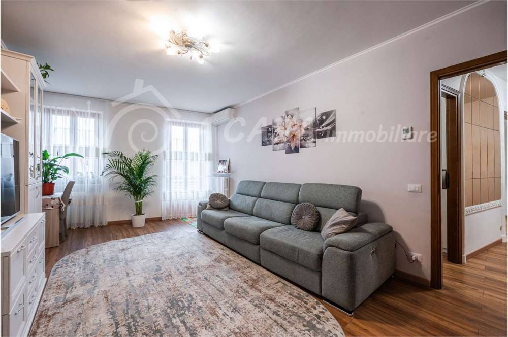La soluzione è posta al primo piano di piccolo contesto condominiale ed è caratterizzata da ingresso sulla zona giorno composta da ampio soggiorno con accesso diretto sul balcone, una comoda cucina abitabile ed un bagno di servizio con box doccia. Tramite disimpegno si accede alla zona notte dove troviamo un'ampia camera matrimoniale, una camera doppia e un comodo bagno con vasca.