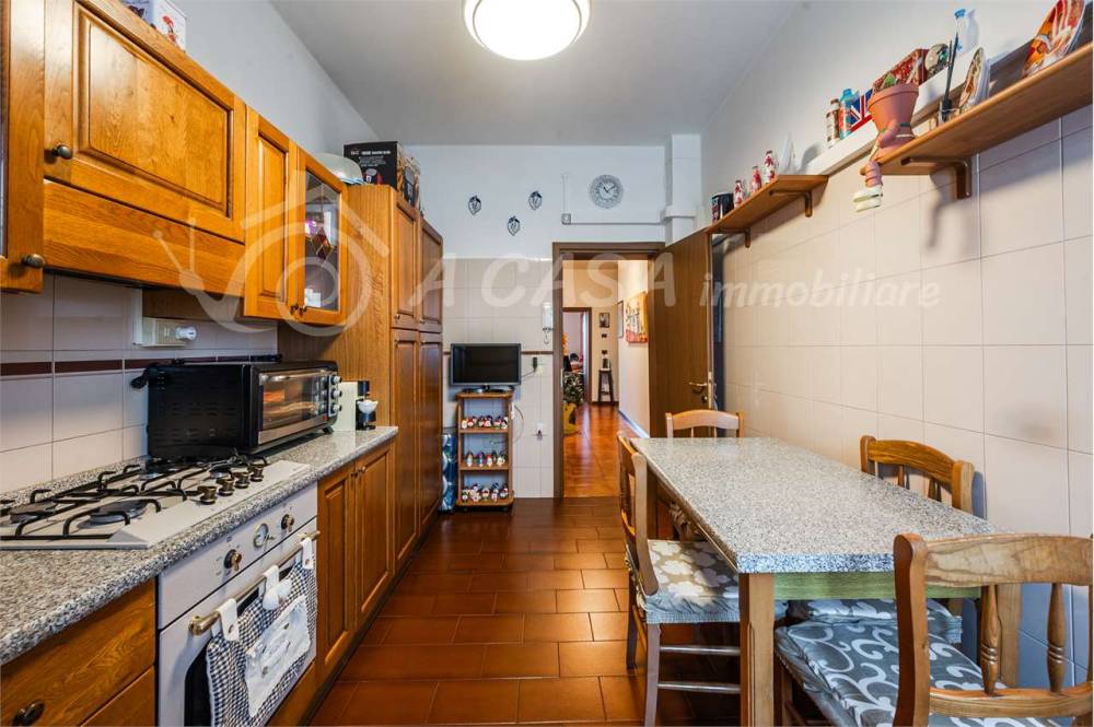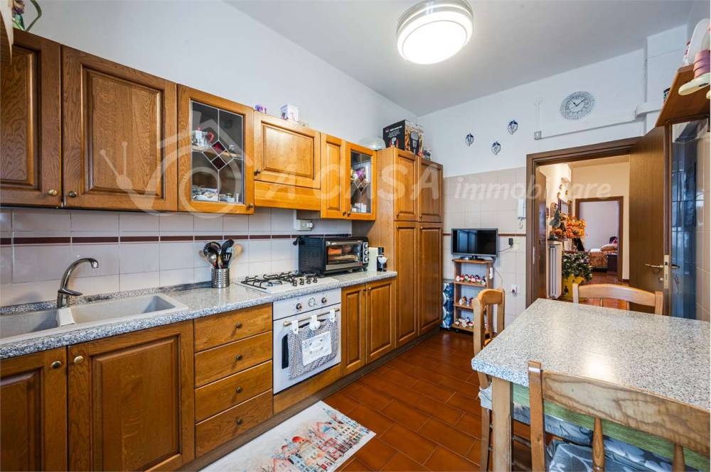 L'immobile è composto da ingresso in disimpegno, soggiorno con accesso sul balcone, cucina abitabile, due camere da letto di cui una matrimoniale ed una doppia, ampio ripostiglio ed il bagno con box doccia. Completano l'immobile una cantina ed un autorimessa di proprietà.