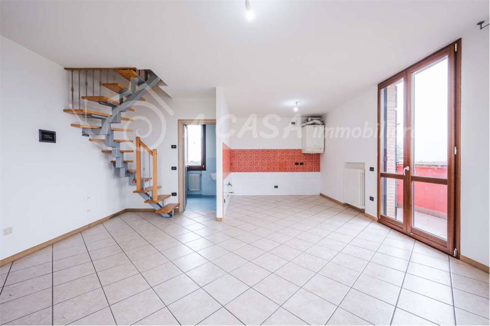 Questa è la soluzione che fa per te, proponiamo in vendita in esclusiva appartamento del 2007 , l'immobile è posto al primo piano  in palazzina di solo quattro unità abitative, disposto su due livelli ed è composto da: ingresso in ampio salone caratterizzato da cucina open space serviti da un balcone dove poter ammirare un bel panorama, bagno e ripostiglio, tramite scala interna si arriva al piano superiore dove troviamo due camere, uno studio ed un bagno con box doccia. L'immobile viene completato da una cantina, un'autorimessa comoda, un posto auto all'interno del cortile condominiale ed un giardino.
