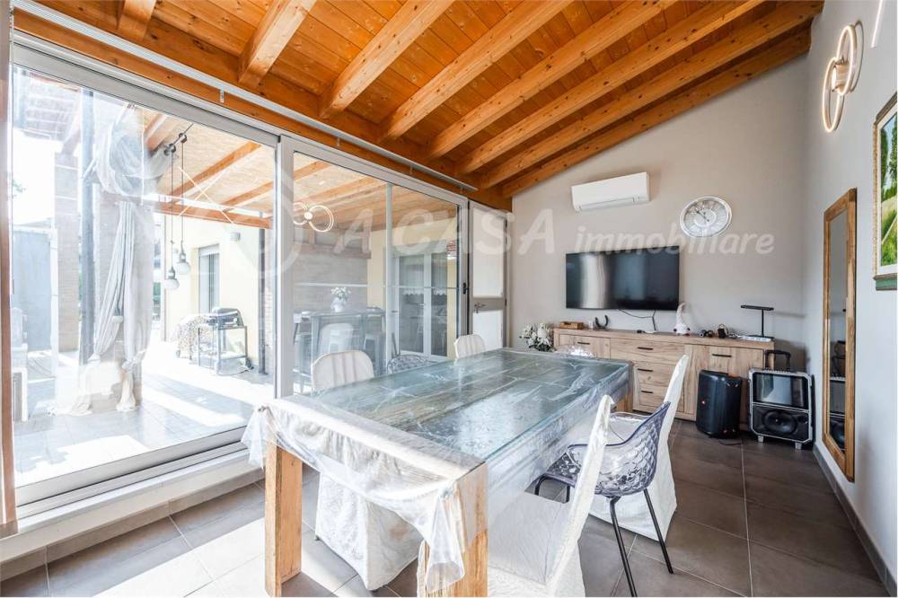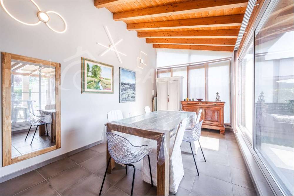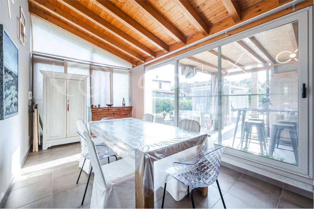 Lo soluzione si espone su due livelli, dove troviamo ingresso indipendente con ampio e luminoso soggiorno, cucina abitabile, un bagno a piano e una graziosa veranda con accesso diretto al magnifico giardino.
