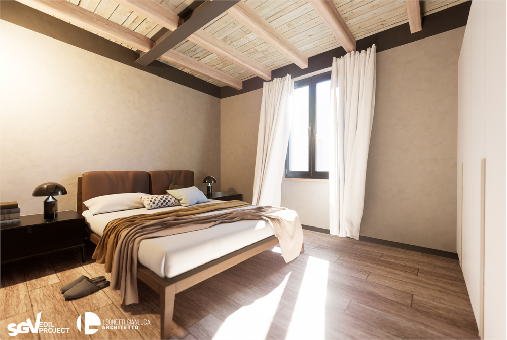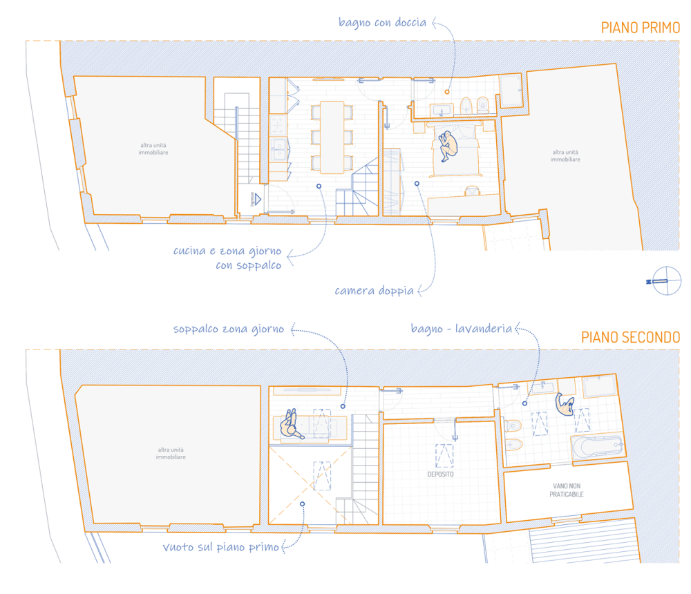 Dalla totale ristrutturazione di un'antica casa storica nasce questo appartamento al piano primo con ingresso indipendente, soggiorno con angolo cottura, camera matrimoniale e bagno e al piano superiore, mansardato, soppalco con vuoto sul soggiorno, ampio locale accessorio che si presta a personalizzazione e un grande locale bagno/lavanderia con annessa cabina armadio.