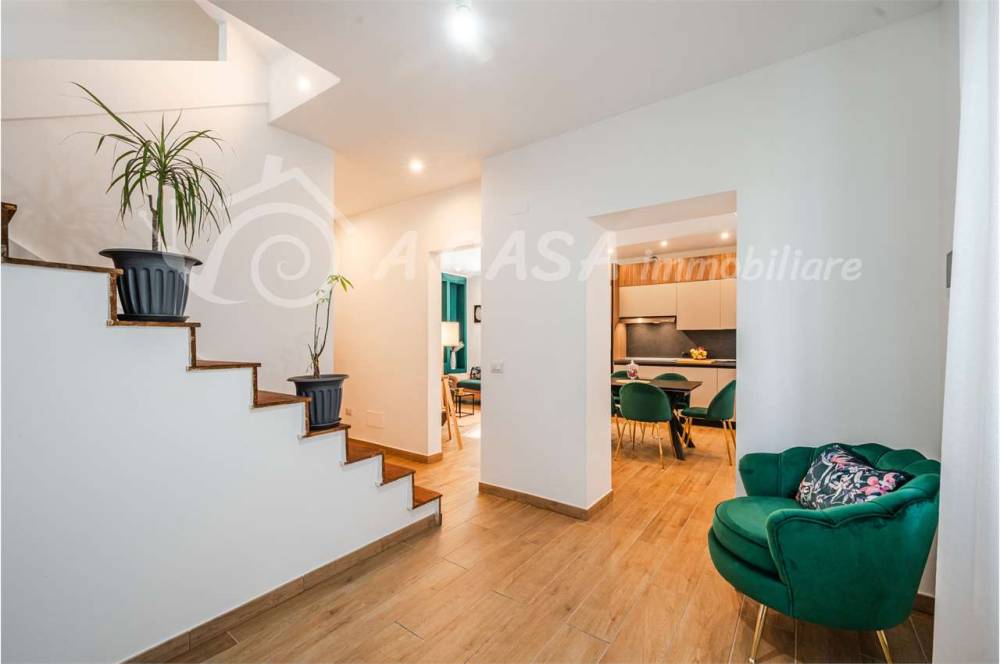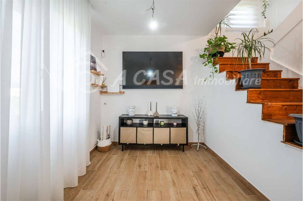 L'immobile si dispone su due piani, al piano terra troviamo un luminoso ingresso, un bagno molto grande, una sala, cucina a vista e lavanderia.