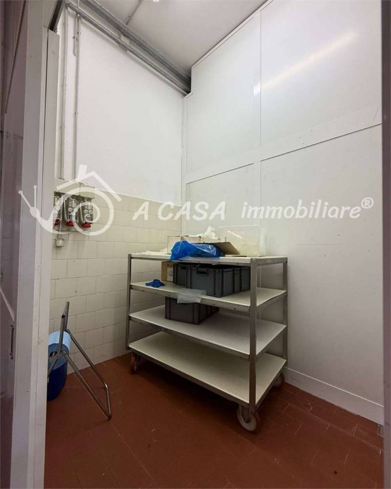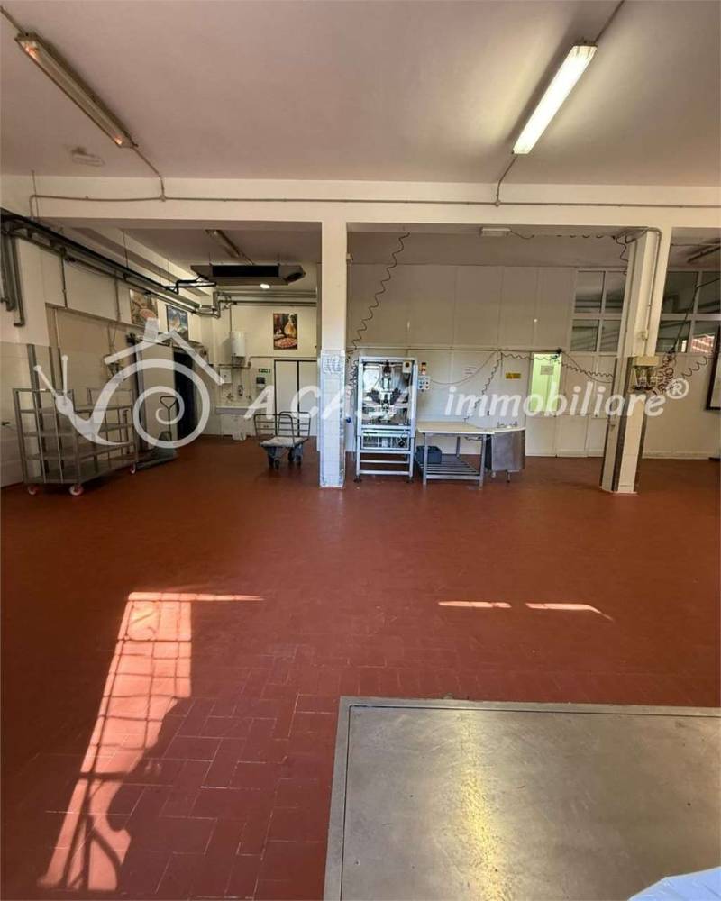 L'immobile è composto da: un ampio locale principale, due celle frigorifere, tre locali deposito, due bagni con box doccia ciascuno, locale caldaia e possibilità di ricavare un ufficio di amministrazione.