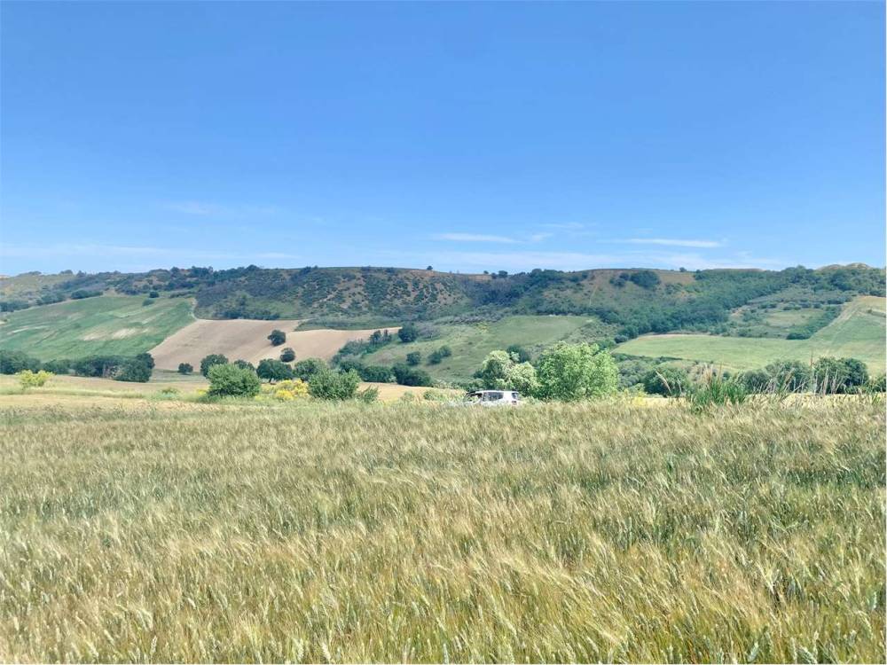 Confinante con il tratturo L'Aquila/Foggia, in Contrada Petriglione, panoramico e ben esposto terreno agricolo seminativo di un ettaro con vecchio rudere su superficie di 760 mq.