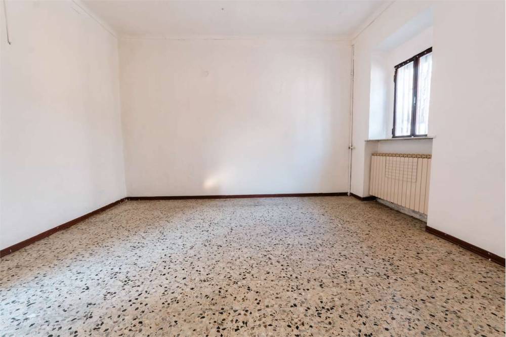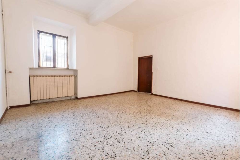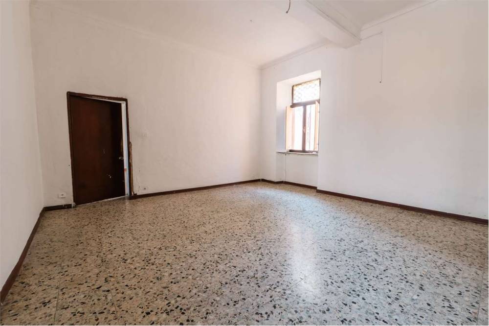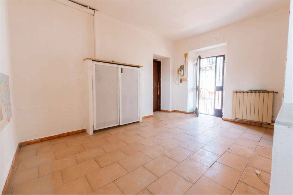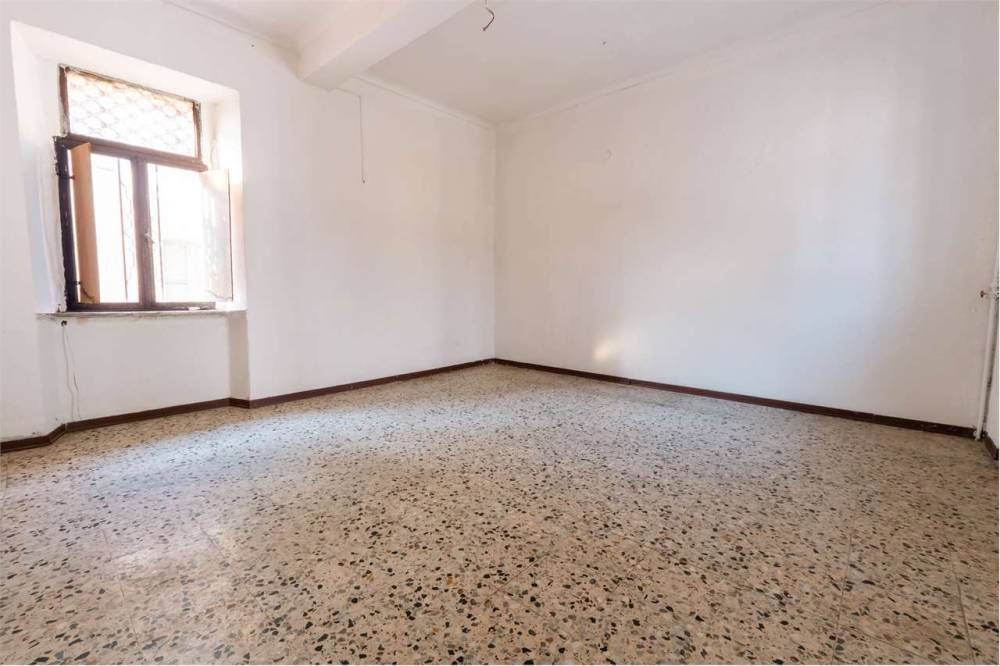 L'appartamento è posto al secondo piano di una palazzina storica di tre piani senza ascensore. Internamente si presenta completamente da ristrutturare e attualmente è composto da un tinello con cucinino a vista e accesso al balcone che affaccia sull'interno cortile, due camere con affaccio sulla via del centro storico e un bagno finestrato con vasca. L'immobile dispone di più accessi: dal vano scale condominiale e dal ballatoio, ed è dotato di porte-finestre oltre alla porta principale.