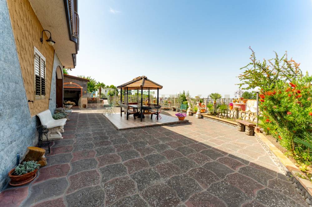 L'agenzia immobiliare Century21 Masters, è lieta di presentare un'ottima opportunità sita in un'oasi di rara bellezza ai piedi dell'Etna e a circa due chilometri dalla superstrada che collega Catania a Biancavilla. IMMOBILE DIVISIBILE IN DUE UNITA IMMOBILIARI. La villa è immersa nel parco dell'Etna e si trova in una zona rinomata per la produzione del vino "rosso dell'Etna" e si presenta, sia internamente che esternamente, in ottime condizioni e non necessita di lavori. Al piano terra troviamo un ampio spazio cucina-salone, due camere da letto, bagno e un'ampia veranda che si affaccia su un grande terrazzo a livello con fontane, fioriere e gazebo. Da una scala esterna si accede al piano superiore dove troviamo un salone da cui si può ricavare anche una cucina, due camere da letto, bagno e balcone su due lati. Come già evidenziato sopra, l'immobile si presta per i suoi spazi comodi e la sua disposizione con due ingressi indipendenti, ad essere diviso in due unità immobiliari, ideali quindi anche per due nuclei familiari. Completa il tutto un terreno coltivato a uva e frutti vari.