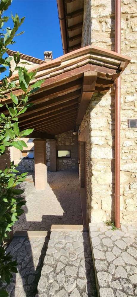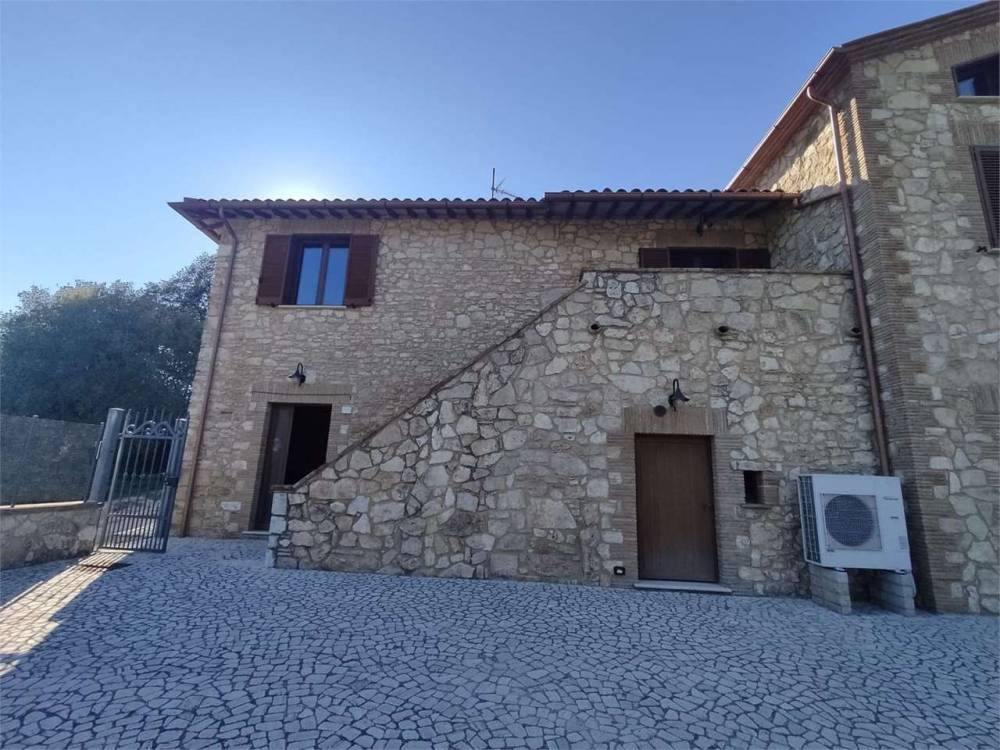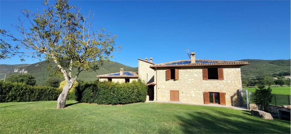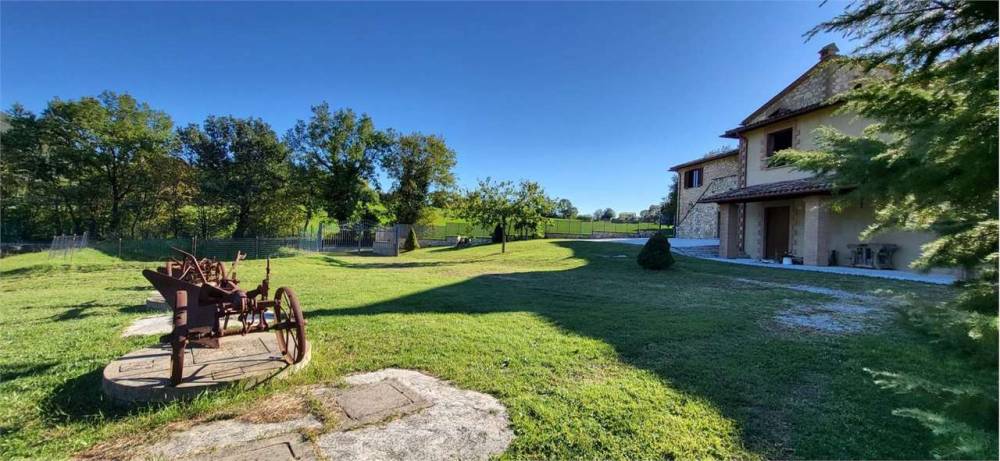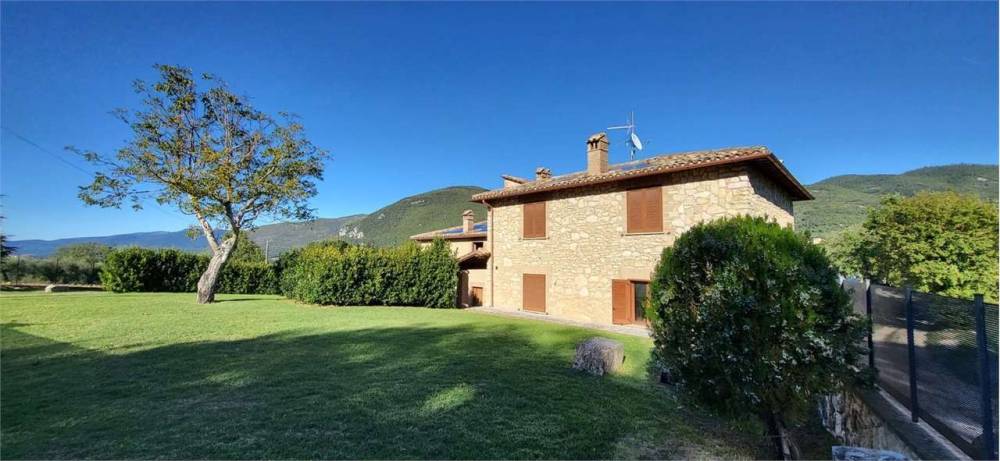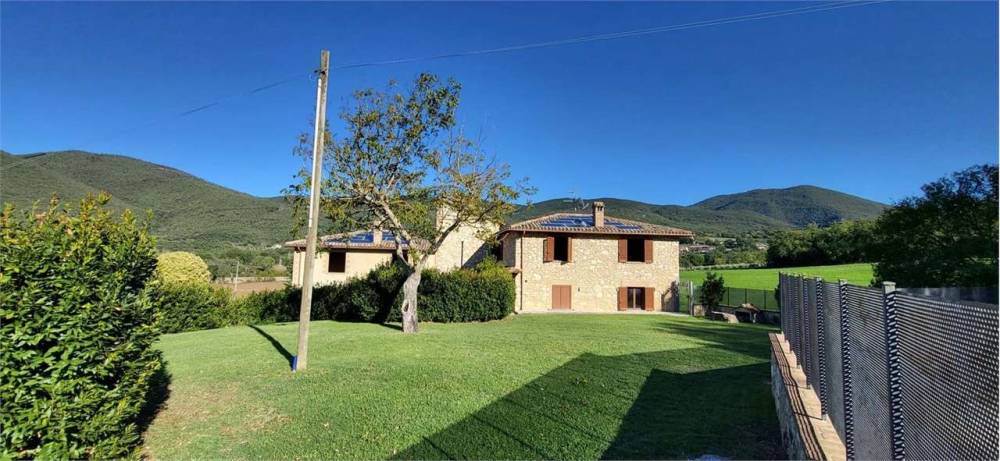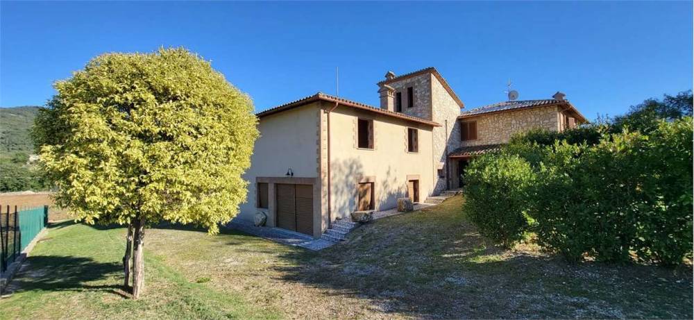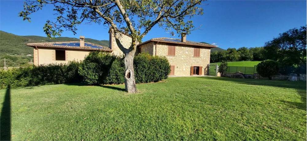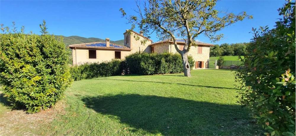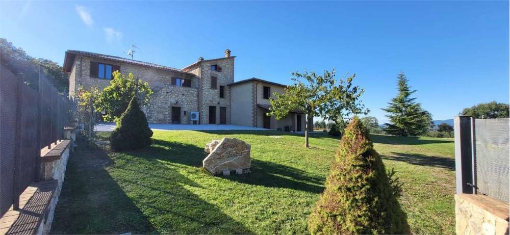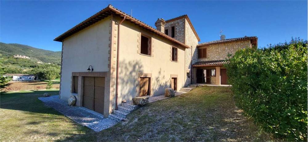 A Portaria, caratteristico borgo medievale, in zona residenziale panoramica immersa nel verde, proponiamo in vendita elegante villa indipendente disposta su due livelli, della superficie commerciale complessiva di circa 350 mq. L'immobile, completamente recintato, è diviso in due unità abitative ognuna delle quali della superficie di circa 175 mq e composta al piano terra da ampio soggiorno con camino, cucina abitabile e bagno mentre al piano primo da tre camere da letto matrimoniali, una cameretta/studio e una piccola soffitta. Una delle due unità immobiliari è completamente arredata nel tipico stile del casale umbro, l'altra è allo stato grezzo avanzato. Completa la proprietà garage al piano terra, ampio giardino esclusivo della superficie complessiva di circa 5000 mq e terreno circostante della superficie di circa 3 ettari. Soffitti con travi in legno a vista. Finiture di medio-alto livello. Impianto di condizionamento.