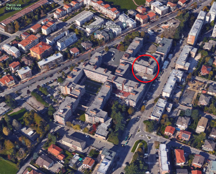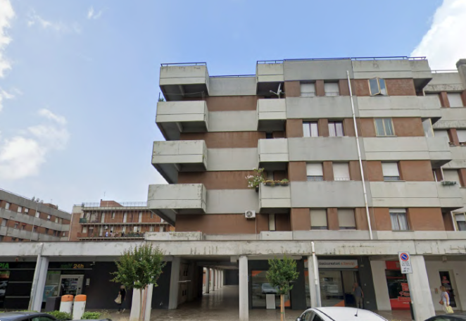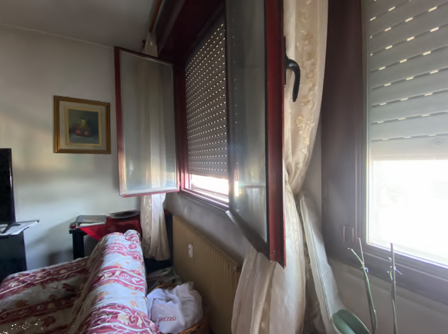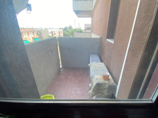 Appartamento al quarto piano con annessa autorimessa di un edificio condominiale con ascensore situato a Spinea (VE) in viale Viareggio, composto da un ingresso, un soggiorno, una cucina, due camere da letto, un bagno finestrato e due ripostigli.
