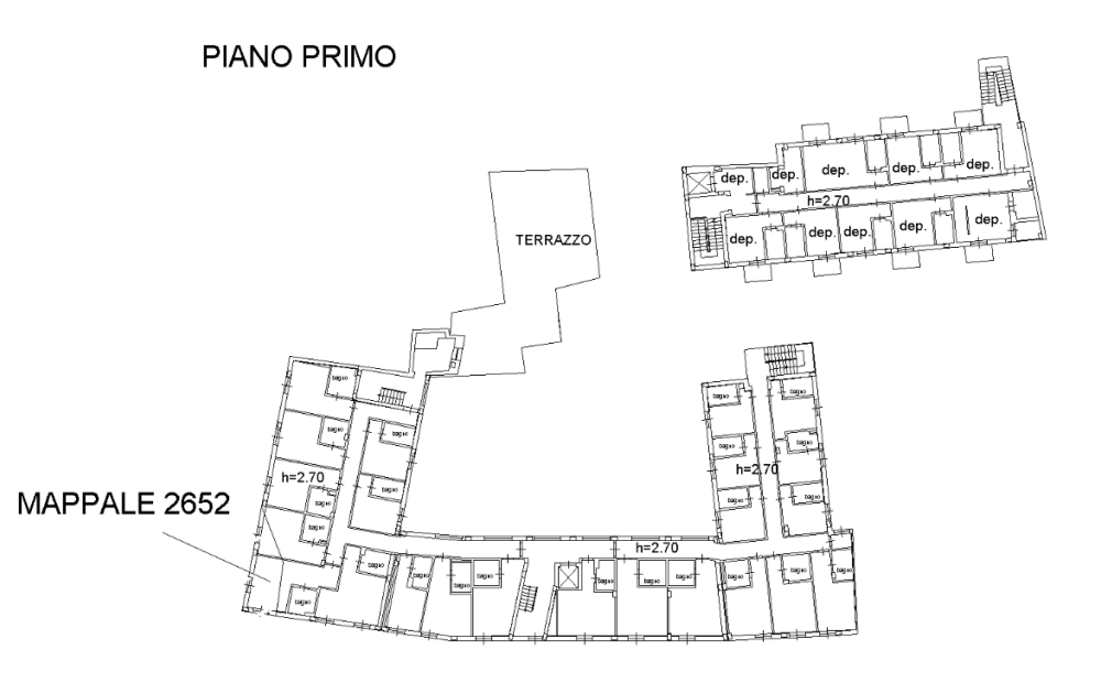 piani di autorimesse interrate, situato in Sannazzaro De' Burgondi (PV) in via Roma angolo via San Bernardino, denominato attualmente Hotel Eridano con annesse aree cortilizie di pertinenza. Superficie commerciale complessiva fabbricati 4.051,77 mq. Superficie commerciale complessiva corti interne 1.187,96 mq.