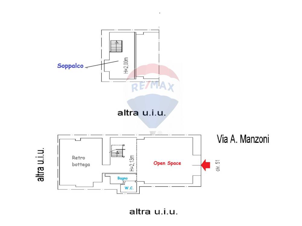 - il locale, è dotato di serranda a comando elettrico e porta d'ingresso in alluminio anodizzato con piccola vetrina.