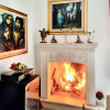 Una scenografica scalinata conduce al piano superiore, dove si trovano uno studio, due camere da letto e un secondo bagno.