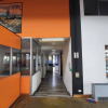 mq 398 hanno destinazione d'uso vendita, con un importante open space munito di sette grandi vetrine, per una massima visibilità, e uffici divisi in vani da pannelli.