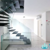 Dal giardino si accede al piano terra dove troviamo un unico ambiente open space da adibire a cucina a vista e soggiorno  zona living, idealmente suddivisi dallelegante scala di design con struttura in vetro e gradini in legno. Un ampio disimpegno dà laccesso al bagno del piano. Ampie portefinestre, che rendono molto luminosi gli ambienti, permettono di fruire della parte esterna, sia al giardino sia al cortile, con accesso carraio per i posti auto.