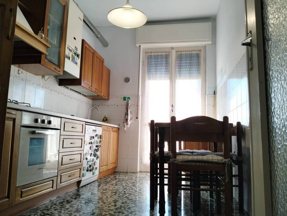 Un lungo corridoio mette in comunicazione tutti gli ambienti della casa, formati da un ripostiglio spazioso, una camera da letto, affacciata sul suo balcone, una lunga e spaziosa cucina abitabile, la camera da letto principale, un bagno finestrato ed infine il soggiorno, locale principale dell'abitazione. Ogni stanza ha un'apertura sui balconi grazie ad ampie porte finestre : queste garantiscono molta luminosità grazie anche all'esposizione sud- ovest dell'alloggio.