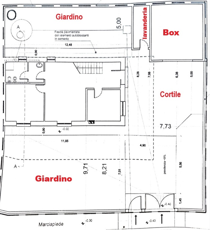 Piano terra ingresso sul disimpegno, cucina abitabile, un grande soggiorno che porta al giardino, una camera, bagno finestrato con doccia, ripostiglio, nel cortile locale di lavanderia, con fibra ottica, porta blindata.