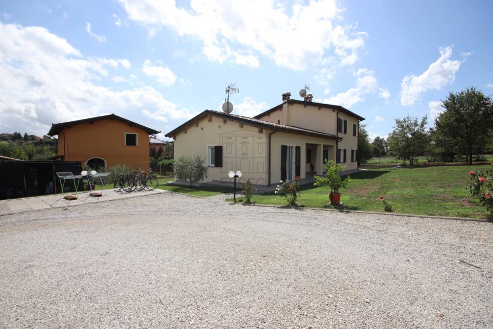 IA04117 - ELEGANTE VILLA DIVISA IN DUE UNITÀ MODERNA CON AMPIO GIARDINO E FINITURE DI PREGIO - Classe energetica A4- In posizione tranquilla e immersa nel verde della campagna, Essegi propone in vendita una splendida villa di nuova costruzione, divisa verticalmente in due abitazioni completamente indipendenti, ideale per due nuclei familiari o per chi desidera un’abitazione principale con dependance. La proprietà si sviluppa su un lotto di circa 1.200 mq di giardino privato, ben curato e completamente recintato, con area parcheggio riservata per quattro auto. L’intero immobile è stato progettato con grande attenzione al risparmio energetico e al comfort abitativo: sono presenti pannelli fotovoltaici, riscaldamento a pavimento, ventilazione meccanica controllata e finiture di alto livello, con bellissimi soffitti con travi a vista che conferiscono calore e personalità agli ambienti. La prima unità abitativa, più piccola, si sviluppa tutta su un unico livello ed è composta da soggiorno, zona pranzo con cucina a vista, una camera matrimoniale, una cameretta e due bagni. Una soluzione pratica e funzionale, perfetta per una coppia, una famiglia di piccole dimensioni o da destinare a ospiti o locazione. Classe energetica A3. La seconda unità, più grande, è disposta su due livelli: al piano terra troviamo un’ampia sala, cucina abitabile, ripostiglio, lavanderia e un bagno; al piano superiore si sviluppa la zona notte con quattro camere, di cui una matrimoniale e una attualmente adibita a cabina armadi, oltre a un ulteriore bagno. La Classe energetica A4 consente una gestione economica. Un immobile completo, pronto da vivere, immerso nella quiete della natura ma a breve distanza dai principali servizi. Un’opportunità unica per chi cerca indipendenza, qualità e un elevato comfort abitativo.Richiesta € 735.000