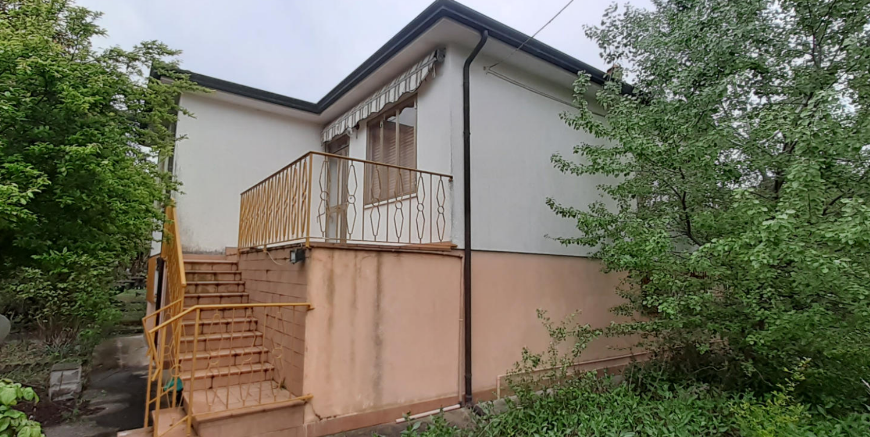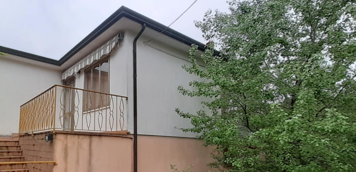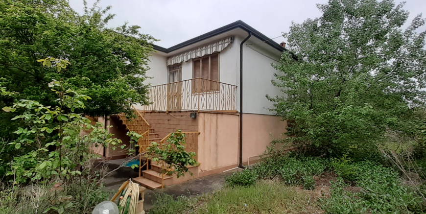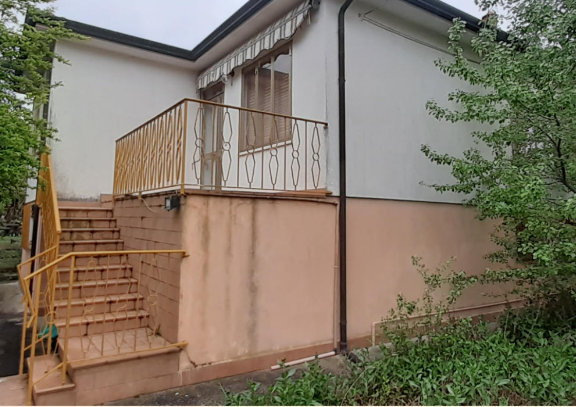 L'immobile è composto da: corridoio ingresso, cucina, soggiorno, sala pranzo, due camere da letto, bagno, scala interna, tre ripostigli, un garage di circa 25,04 mq ed un terrazzo, troviamo inoltre un magazzino di circa 9,37 mq ed un area scoperta di circa 510 mq.
