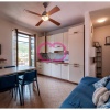 Appena entri, il soggiorno con angolo cottura ti accoglie.