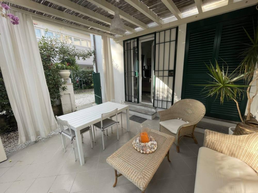 Marina di Pietrasanta – Appartamento piano terra per 2/3 persone, a 100 m dal mare, composto da soggiorno-pranzo con angolo cottura e divano letto, una camera matrimoniale con bagno. Pompeiana coperta e giardino privato. Aria condizionata, wi-fi.