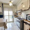 L’ingresso è nel disimpegno della zona giorno: a sinistra la cucina abitabile con balcone, sulla destra l’ampio soggiorno con balcone verandato.