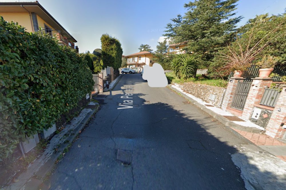 diritto di piena proprietà 1/1 su unità immobiliare ubicata nel comune di trecastagni, prov. ct, e censito al n.c.e.u. del suddetto comune al foglio 14, part.655, cat. a/7, classe 3, consistenza 10.5 vani, rendita e. 1.111,67. Sorge in via g. perlasca, n. 8, piano t-1-s1, rispettivamente seminterrato, terra e piano primo; più precisamente, è stato costruito su un lotto di un terreno di pertinenza esclusiva e confina a sud con sede stradale pubblica e sugli altri versanti con