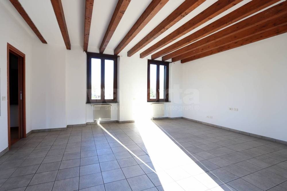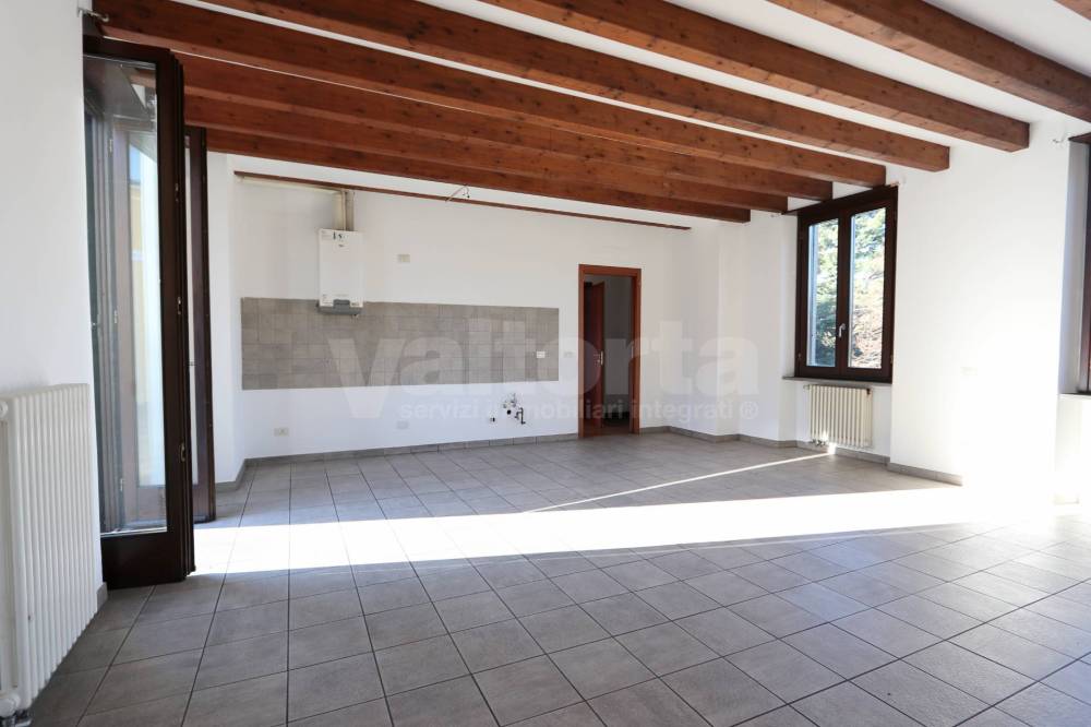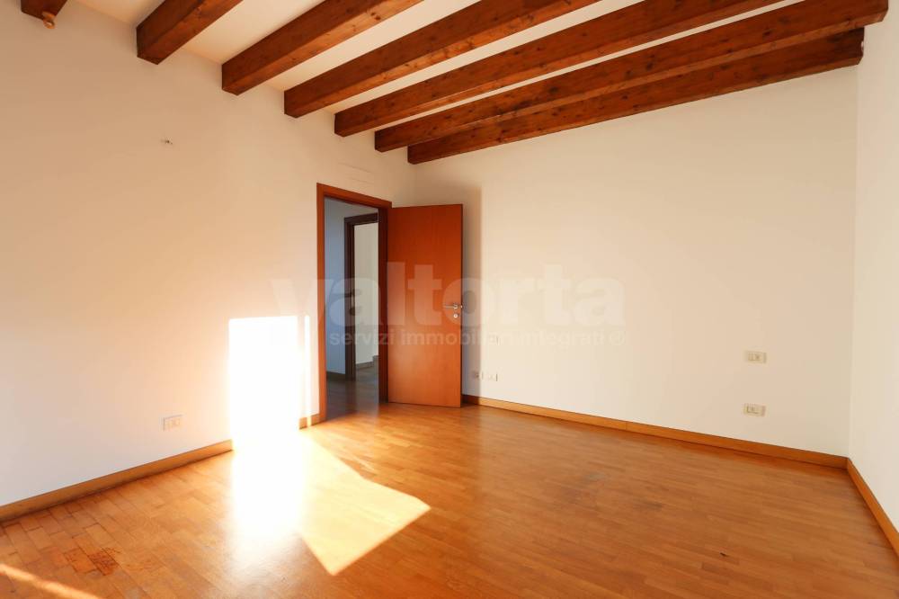 Lappartamento, che conserva il fascino delle strutture storiche, è caratterizzato dalle bellissime travi a vista che donano calore e personalità agli ambienti.