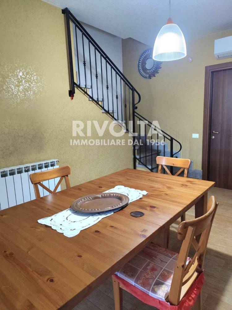 L'interno è così composto: l'ingresso da su un ampio leaving, una camera e un bagno che serve il livello. Da qui si accede tramite scala ad una deliziosa mansarda con 2 camere, di cui una con balcone e un bagno. Sempre dall'ingresso si scende di un livello per accedere ad una taverna con ampia portafinestra, cucina completa di arredamento un bagno e 3 ripostigli, il tutto per una metratura di circa 160 mq. Completa la proprietà una tettoia in legno nella parte antistante la proprietà per il posteggio di 3 auto. L'immobile è dell'anno 2002, è stato ristrutturato nel 2013 e si presenta in discrete condizioni.