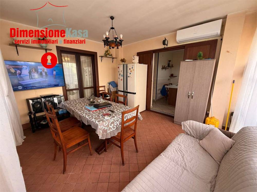 Cucina semi-abitabile con accesso a terrazzo di 16 mq verandato con Tende Cristal e attrezzato come area Pranzo esterna, ideale da vivere tutto l'anno;