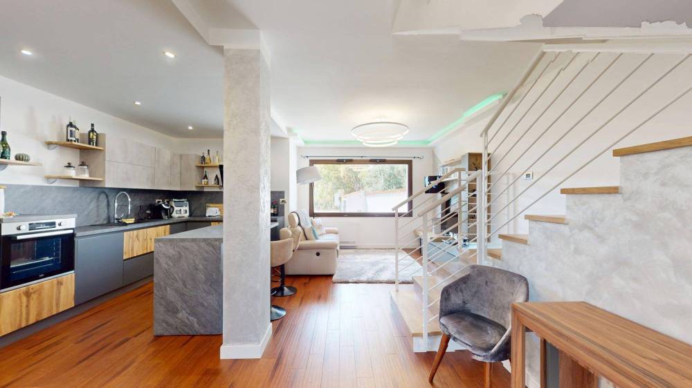 In via Capri, a pochi passi dal mare e dalle splendide spiagge del Poetto, sorge questa porzione di bifamiliare che unisce il fascino di una residenza storica degli anni 80 con lattualità di una ristrutturazione totale, eseguita con materiali ricercati, soluzioni tecnologiche allavanguardia e una cura dei dettagli che la rendono unica.