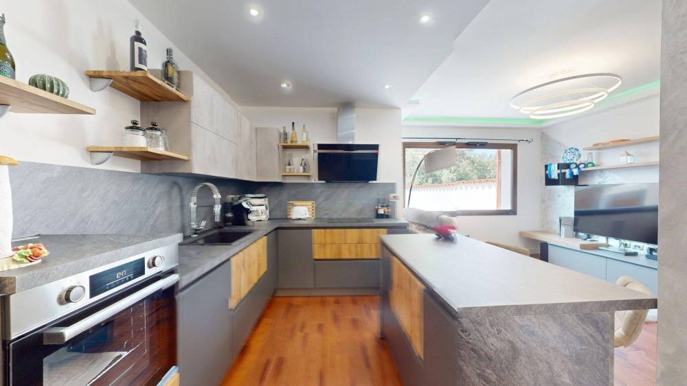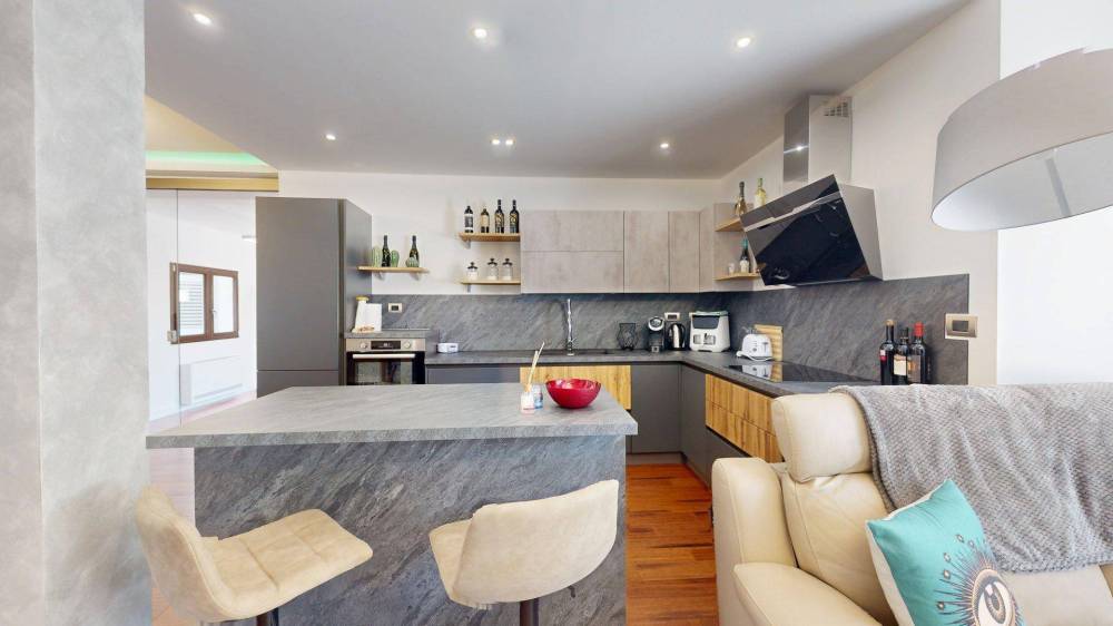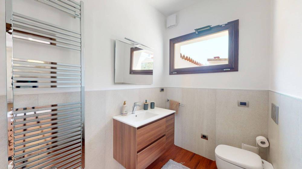 Questa residenza non è solo bella: è anche tecnologicamente avanzata e sostenibile. Il sistema di riscaldamento Ariston con termoconvettori in ogni ambiente assicura comfort diffuso, mentre nei bagni il piacere è amplificato dagli scalda salviette. Lacqua sanitaria è gestita da un moderno scaldacqua termodinamico da 110 litri, garanzia di efficienza e continuità. Sul tetto, i pannelli fotovoltaici con batterie di accumulo da 10 kW permettono unimportante autonomia energetica, abbinando risparmio e rispetto per lambiente. Lintera abitazione è rivestita da un cappotto termico in poliuretano espanso da 10 cm, che assicura un eccellente isolamento e comfort abitativo in tutte le stagioni.