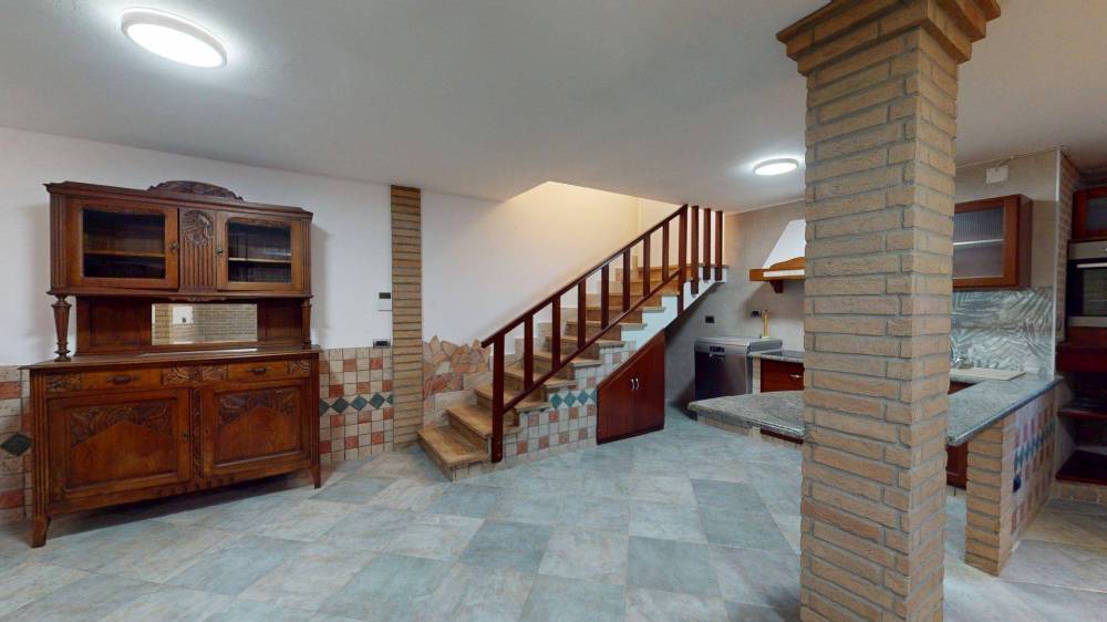 Il seminterrato ospita una taverna accogliente e versatile, perfetta per ricreare un ambiente conviviale, unarea hobby o fitness, affiancata da una dotazione tecnica di grande valore: una pompa sommersa per il tiraggio dellacqua, che garantisce sicurezza e funzionalità in ogni stagione.
