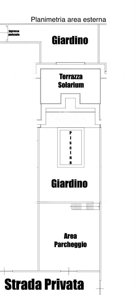 La proprietà vanta di ampi spazi esterni di circa 455 mq di cui un giardino privato con piscina e un ampio spazio pavimentato, perfetto per posti auto o per creare unarea living allaperto.