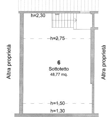 Unità al piano secondo e terzo ( sottotetto) di un più ampio edificio condominiale e formato da ingresso, soggiorno con angolo cottura, camera, bagno e disimpegno al piano secondo, oltre sottotetto costituito da un unico grande vano al piano terzo.
