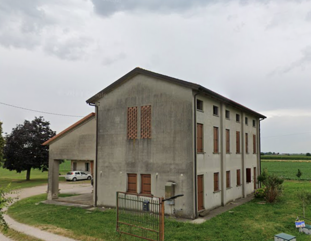 Villa bifamiliare al piano terra, primo, secondo con annesso area cortiliva situata in Villa Estense (PD) in via Arzaron, composto al piano terra da un portico, un ingresso / soggiorno, sala da pranzo, una cucina, un bagno, un disimpegno, scala interna, al piano primo da un disimpegno, una scala interna, due vani letto, due bagni, al piano secondo da un locale sottotetto praticabile.