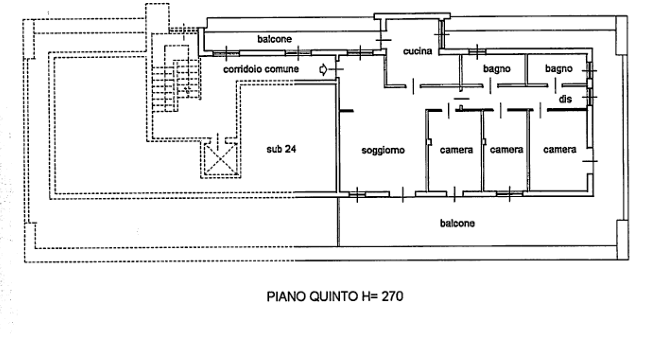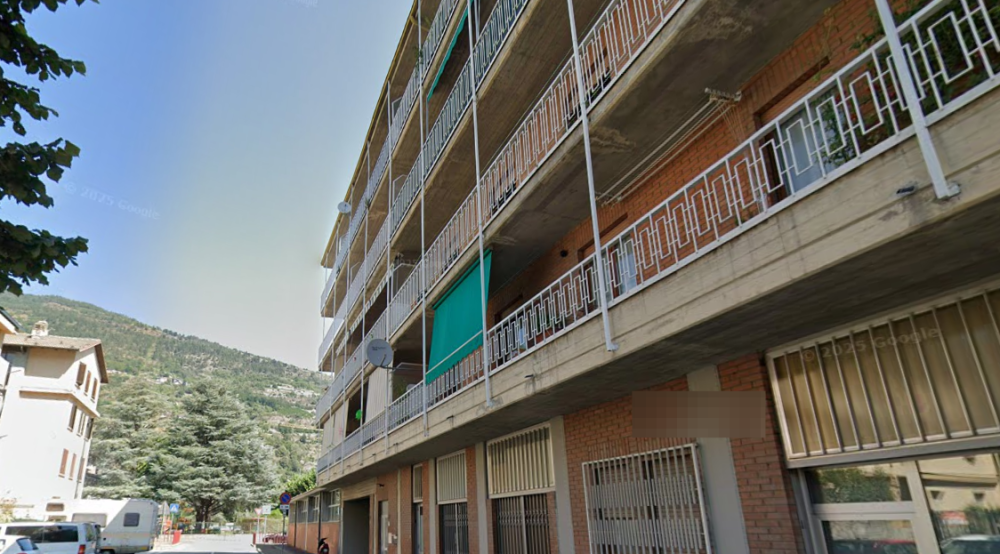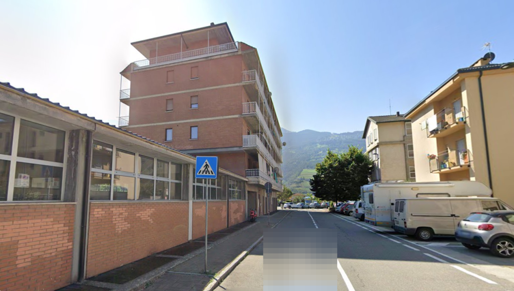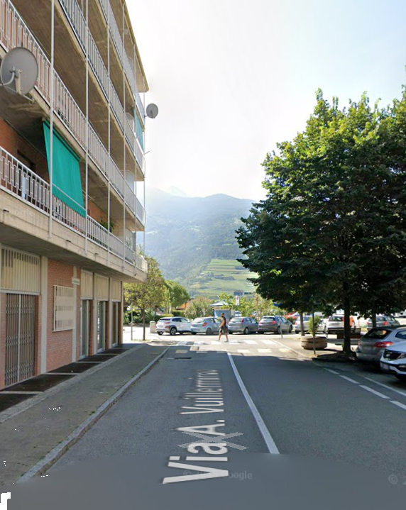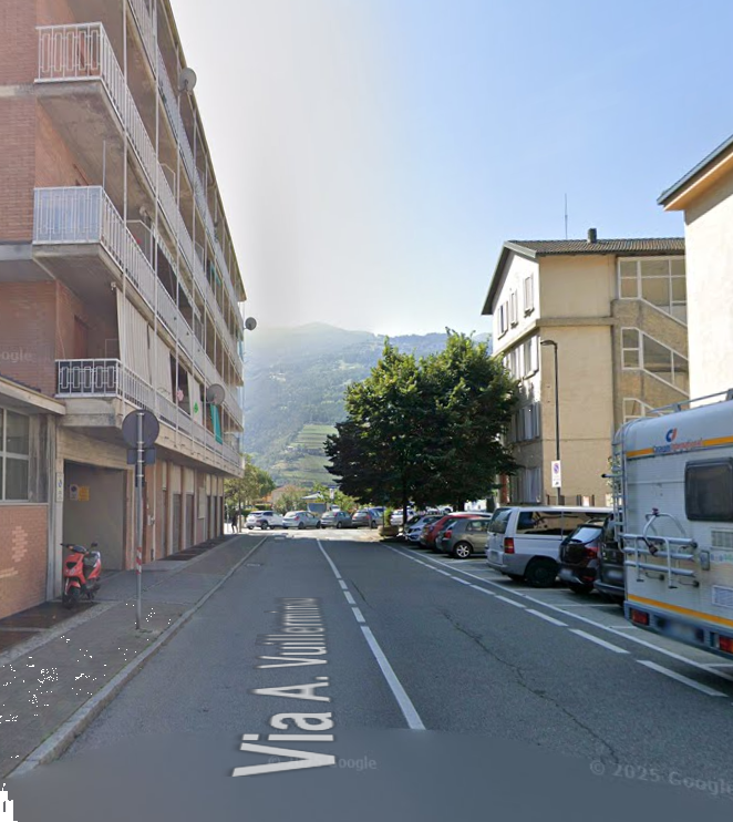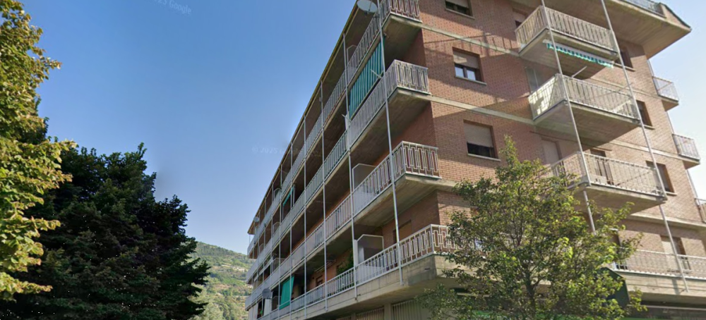 Appartamento situato ad Aosta (AO), facente parte del "Condominio Aosta" , di sei piani fuori terra, oltre a due piani sotterranei. Internamente si compone di: al piano quinto un ingresso su soggiorno, una cucina, tre camere da letto, un corridoio, un disimpegno, due bagni e un terrazzo su tre lati. L'appartamento ha in dotazione una cantina posta al piano secondo interrato, una autorimessa al piano primo interrato con portone basculante in lamiere preverniciata.