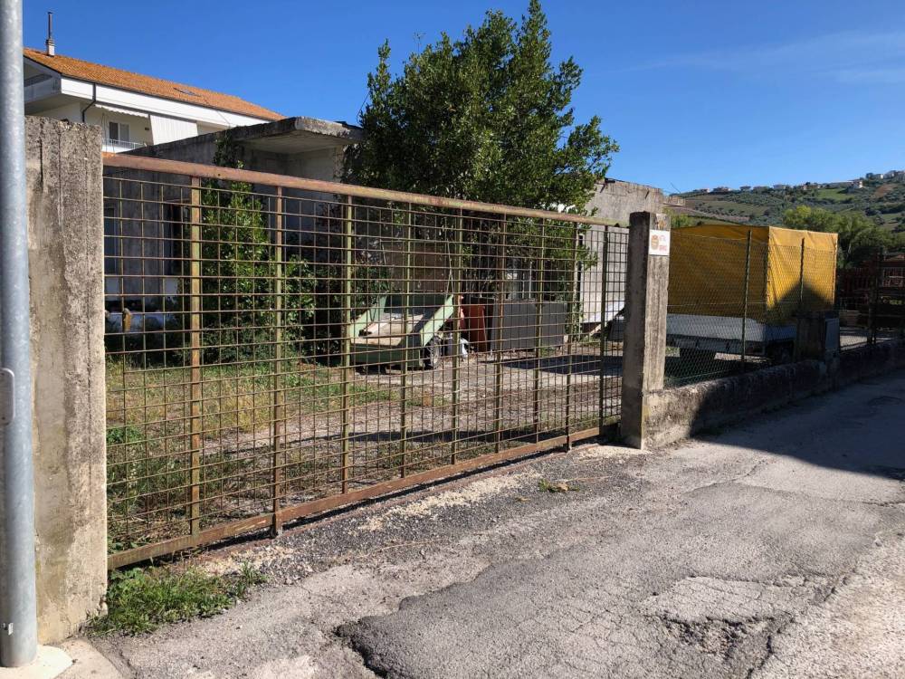 ampia corte pianeggiante di 1.700 mq. ad uso stoccaggio con fronte strada di 59,00 mt. e parzialmente recintata con muretto in cls. e rete metallica con 2 accessi carrabili
