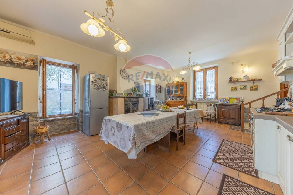 questo spazio è diviso in zona conversazione e zona pranzo adiacente ad una spaziosissima cucina pensata come le cucine di altri tempi, entrando sembra quasi di sentire il profumo di ottime pietanze , con zona operativa molto grande adatta a preparare prelibatezze per molti commensali e camino pensato per scaldare l'intera abitazione